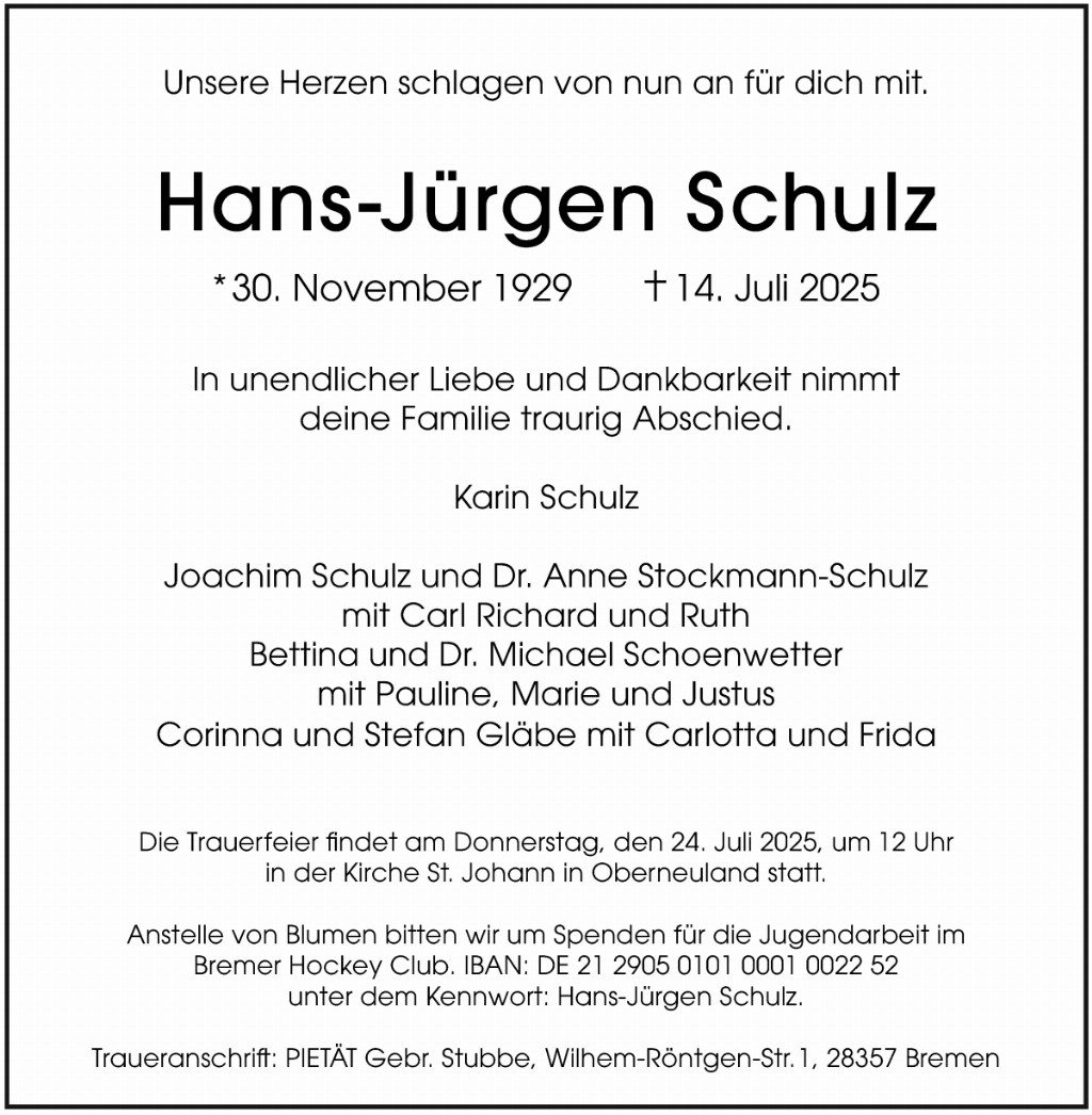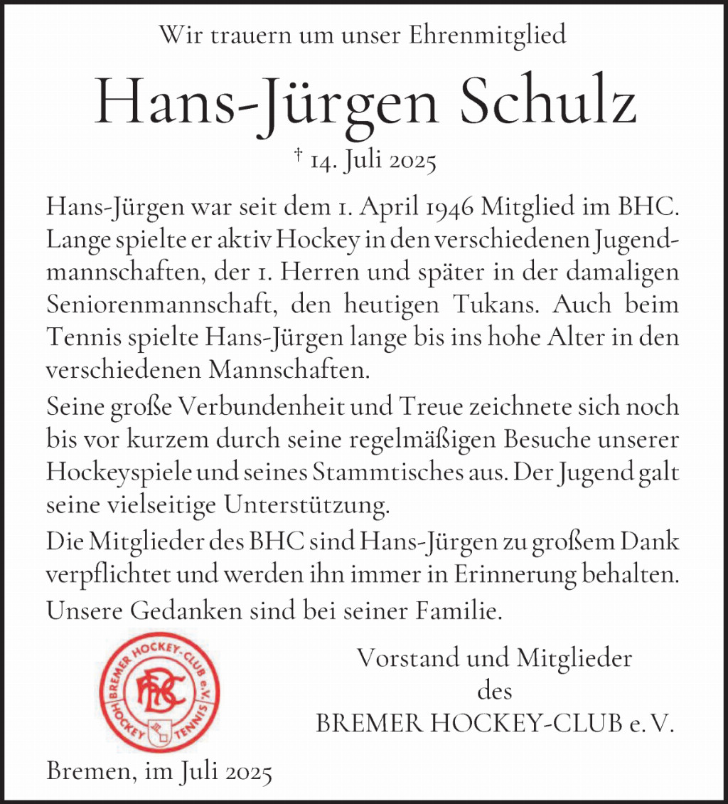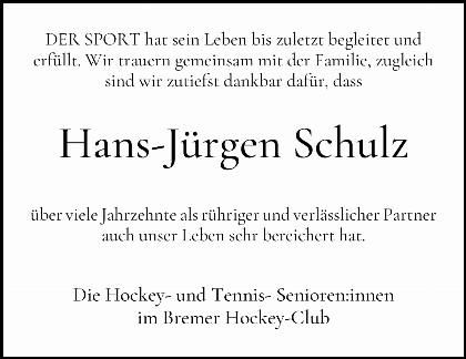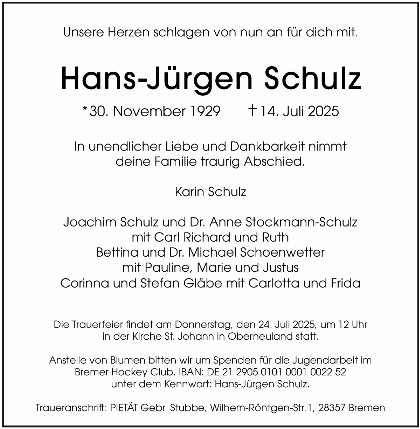 * 30.11.1929 in Bremen† 14.07.2025 in Bremen