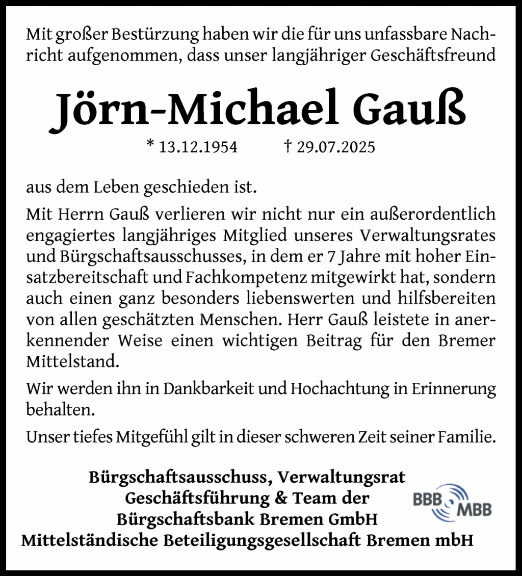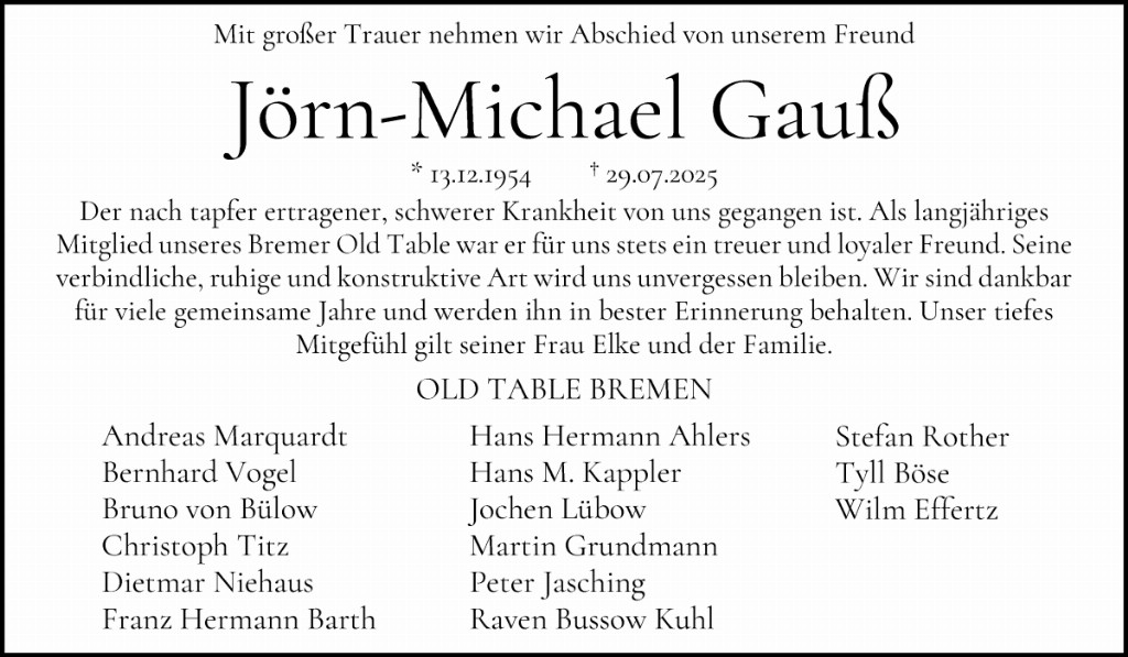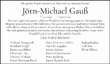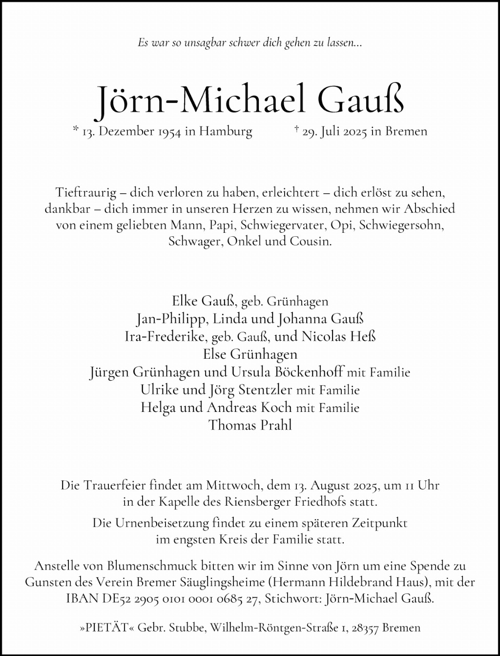 * 13.12.1954 in Hamburg† 29.07.2025 in Bremen