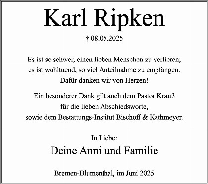 * 21.08.1935 in Bremen† 08.05.2025 in Bremen
